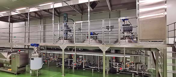 兩條液體生產(chǎn)線,配備更為復(fù)雜的設(shè)備及工藝。